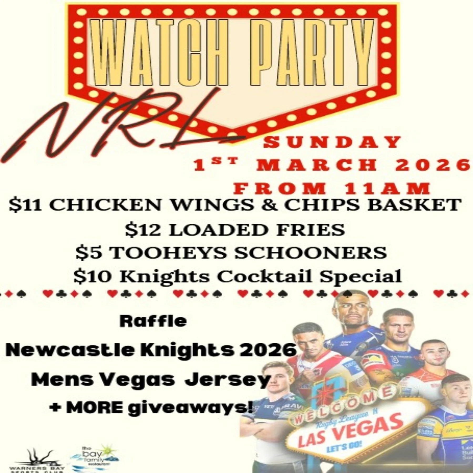 WATCH PARTY VEGAS NRL Feb 11 Written By Louise Saxton Sunday 1st March from 11amWatch on the big screenCome & enjoy our watch party! Louise Saxton